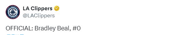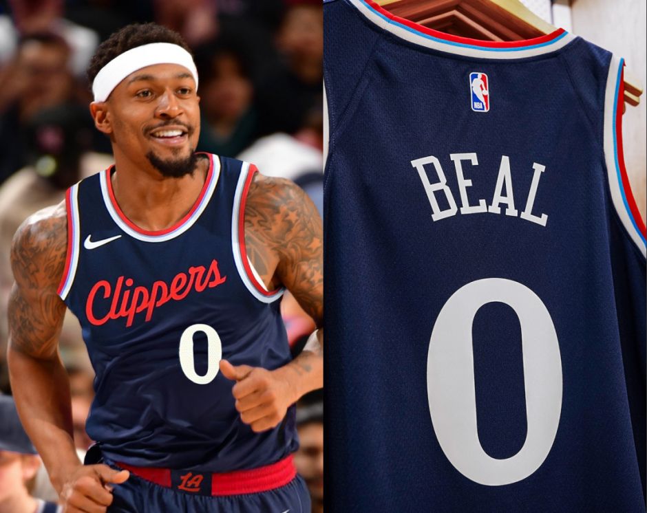 比尔是快船队史上第13位身穿0号的球员,上一位是2024-25赛季的博尚。古登、格伦-戴维斯、威少也都在快船效力时穿过0号。