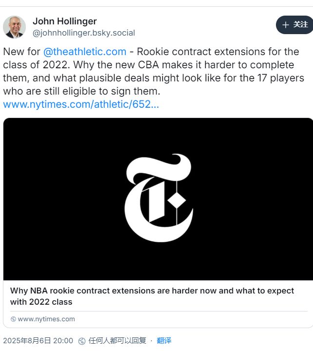 北京时间8月6日,TA记者John Hollinger谈到了火箭前锋塔里-伊森的提前续约问题,他提出三个重要点: