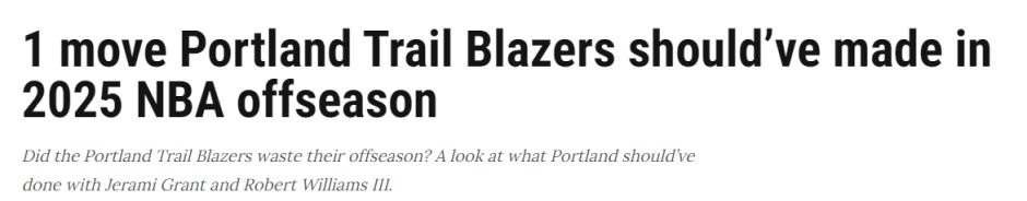 试图让所有人都满意?开拓者可能会阻碍年轻球员的成长。他们可能会陷入NBA最尴尬的“中游陷阱”:既不够差到能拿到高位选秀权,又不够强到能赢球。