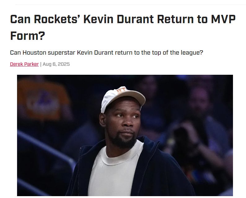 美媒分析37岁KD有望重返MVP竞争行列:火箭防守+阵容深度 保持健康