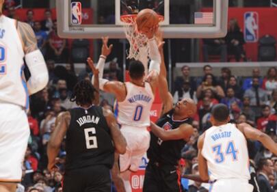 24直播网1月5日讯 雷霆今日在客场以127-117战胜了快船,本场比赛,雷霆球员拉塞尔-威斯布鲁克得到了29分12个篮板11次助攻的三双数据。