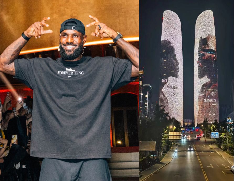 中国行继续!詹姆斯已于凌晨飞抵成都 双子塔为他点亮巨幅海报