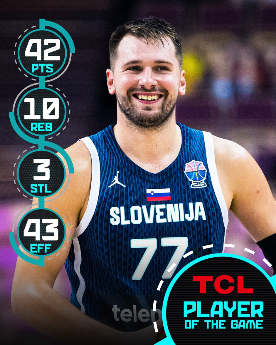 东契奇全场出战33分17秒,19投11中,三分11中5,罚球16中15,效率极高。相比之下,意大利队核心丰泰基奥也有22分5篮板3助攻3抢断的贡献,但难以独力对抗东契奇。斯洛文尼亚其他球员中,只有普雷佩利奇得分上双,拿下11分,球队对东契奇是极度依赖。