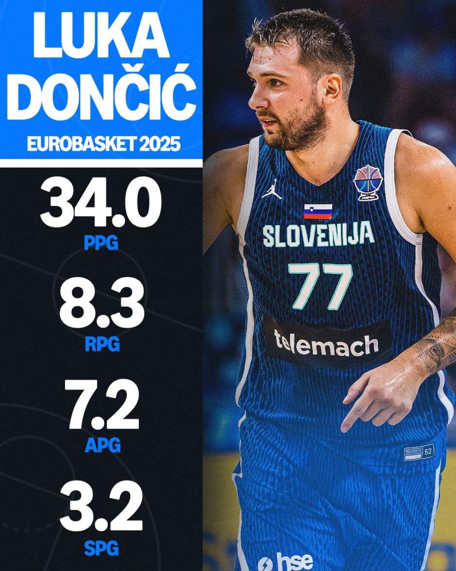 本届欧锦赛中,斯洛文尼亚的战术体系就是依赖东契奇,场均贡献34.7分8.6篮板7.1助攻2.7抢断,得分、篮板、助攻、抢断、效率和盖帽六项数据均为全队最高,场均得分和抢断是赛事第一,助攻排第二。再次证明了他在球队中的核心作用,斯洛文尼亚其他球员在进攻端的贡献有限。