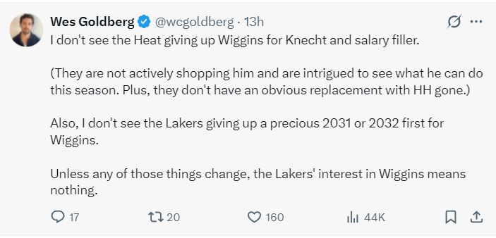 我认为湖人队也不愿意为了交易得到维金斯而付出2031年/2032年的首轮签,除非湖人愿意送出首轮签,不然就算湖人对维金斯有意也没有任何实际意义。