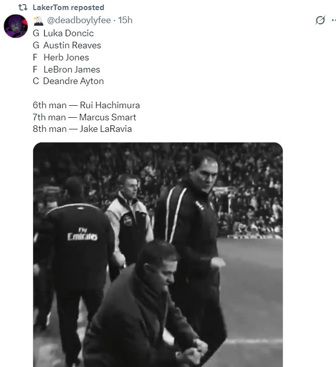 湖媒认为如果湖人为了维金斯都要支付一个首轮签,那么不如把这个首轮签拿去追逐赫伯特-琼斯。湖人先发东契奇、里夫斯、琼斯、詹姆斯、艾顿,替补八村垒、斯玛特、拉拉维亚。