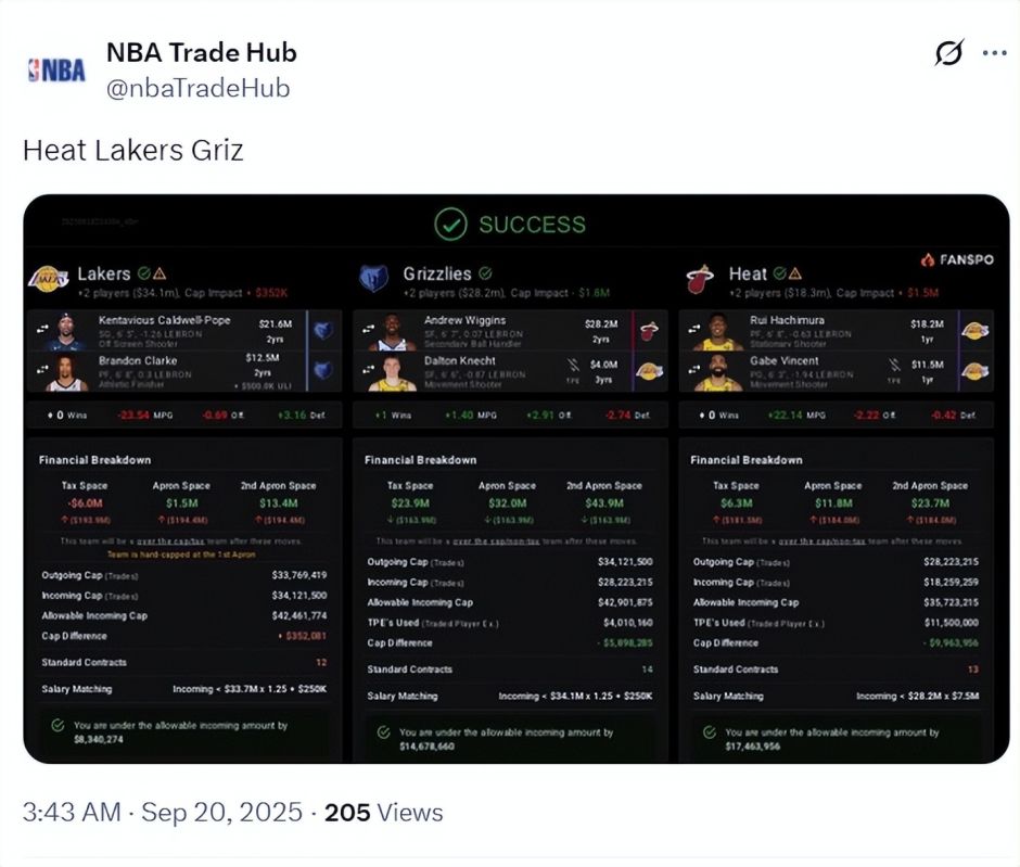 美媒NBA Trade Hub提出了一笔全新的交易模拟方案: