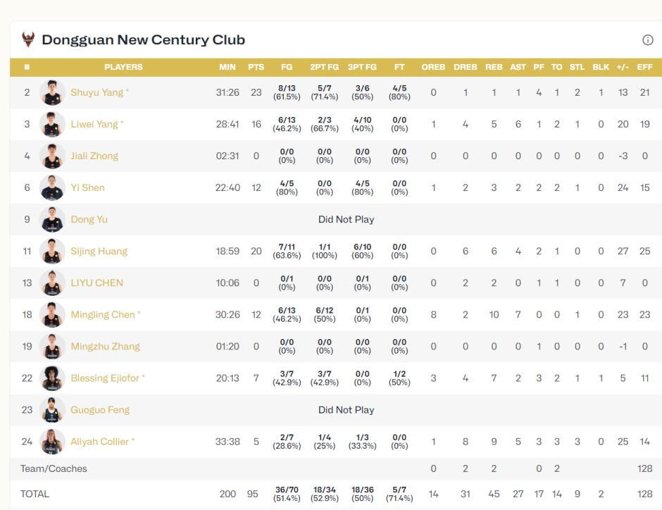 杨舒予场均27.2分钟,拿到13.3分3.3助攻2篮板1.3抢断0.8盖帽,命中率53.8%,三分命中率29.4%,她的数据更差,陈明伶落选最佳阵容真的太不应该。