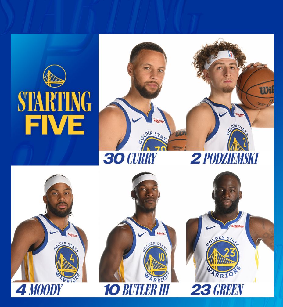 这场季前赛之前科尔在采访中透露因为库明加跟球队谈续约的问题,库明加实际上跟球队没有进行过完整的5V5合训,所以库明加并没有得到先发的席位,科尔用了一套究极五矮,库里、波杰、穆迪、巴特勒、追梦。