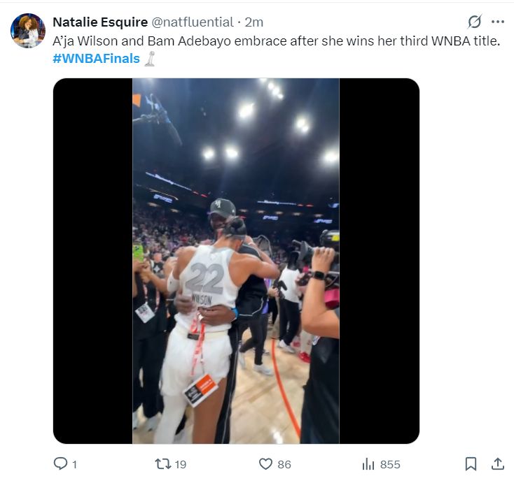 美媒NBACentral写道:王牌拿到了WNBA总冠军,威尔逊成为FMVP,我们正在见证GOAT。
