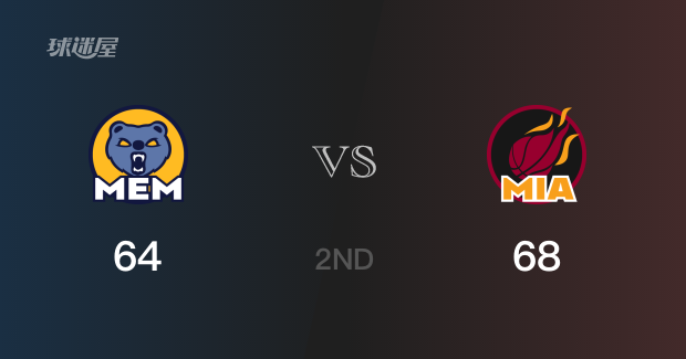 半场结束,热火以68-64领先灰熊4分,第三节再战。
