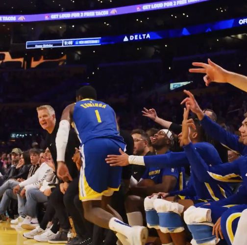 当库明加第三节暴走后肉眼可见的高兴啊,他命中三分后露出了自己洁白的大板牙,库明加这一节就征服了勇士球迷,不少勇士媒体已经开始道歉了。