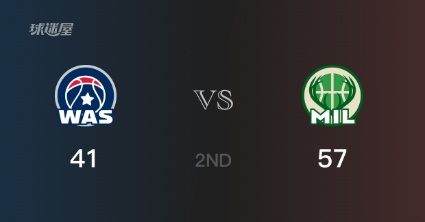 半场结束,雄鹿以57-41领先奇才16分。