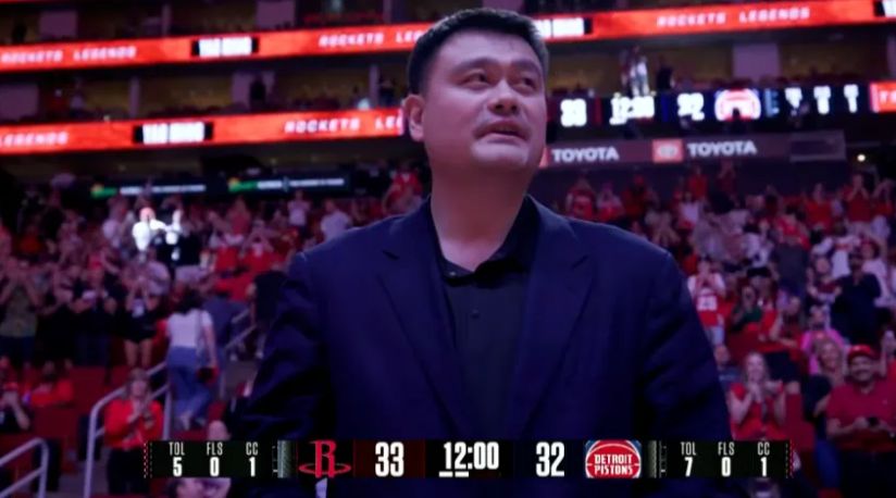 火箭名宿姚明也到场观战,火箭官方制作了致敬视频。