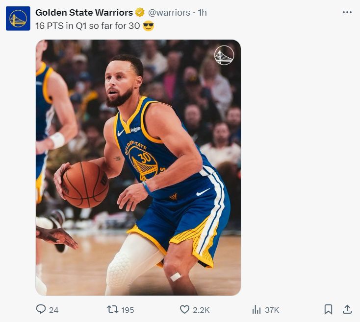 第二节库里的进攻效率有所下滑,也因为库里的效率下滑勇士这一节28-41被开拓者拖垮,库里上半场打完已经24分+5个三分球了,37岁的老将竞技状态没的说。