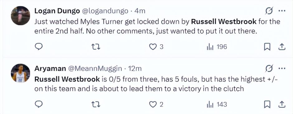 国王球迷们都对威少的表现送上赞誉:整个下半场威少都紧紧贴防迈尔斯-特纳,我只想让大家知道威少很努力;