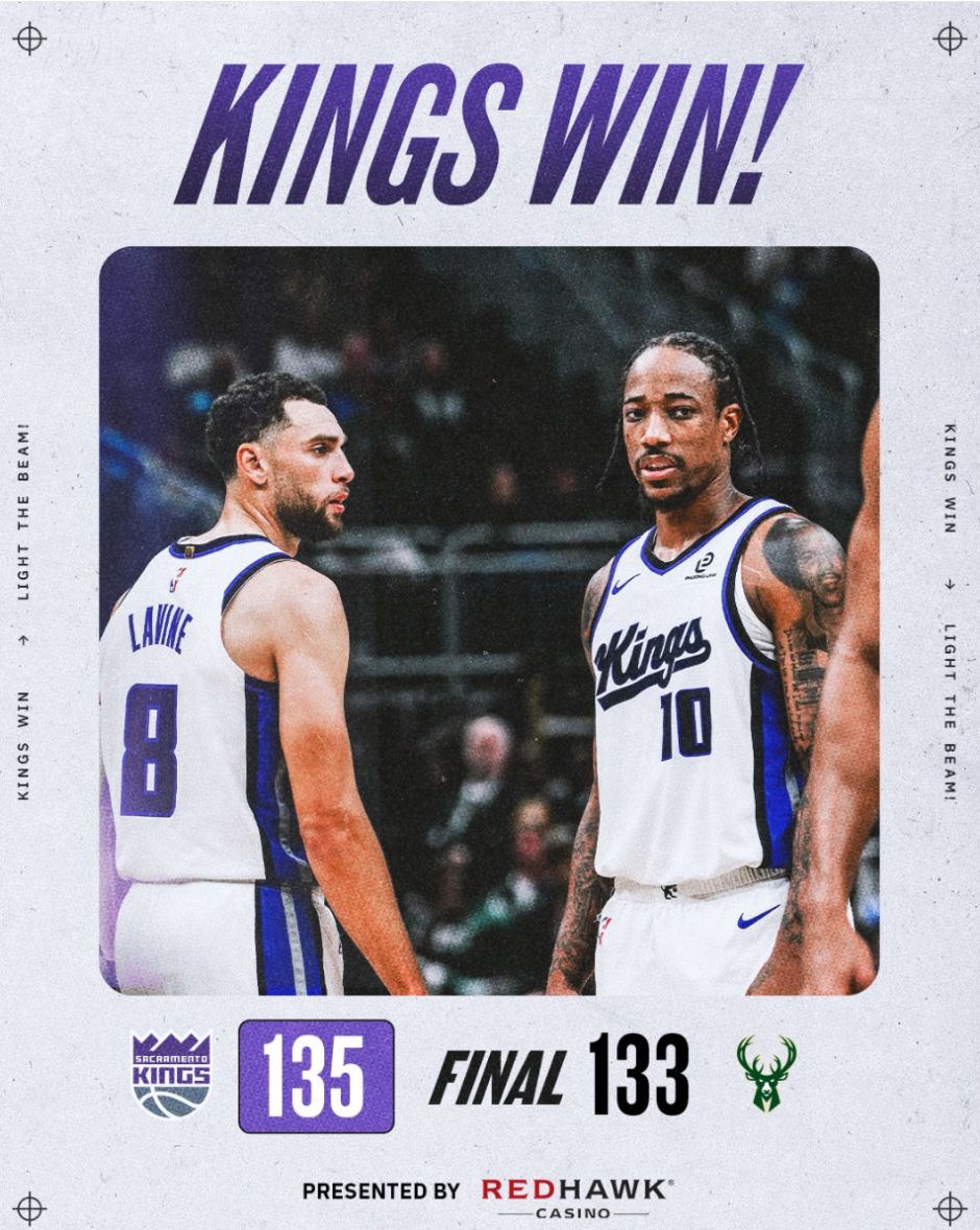 拉文全场比赛31分4篮板2助攻,美中不足是末节0分;德罗赞全场比赛29分4篮板3助攻末节7分,小萨博尼斯24分13篮板6助攻末节7分5篮板1助攻,施罗德全场比赛24分7助攻5篮板末节4分2抢断。