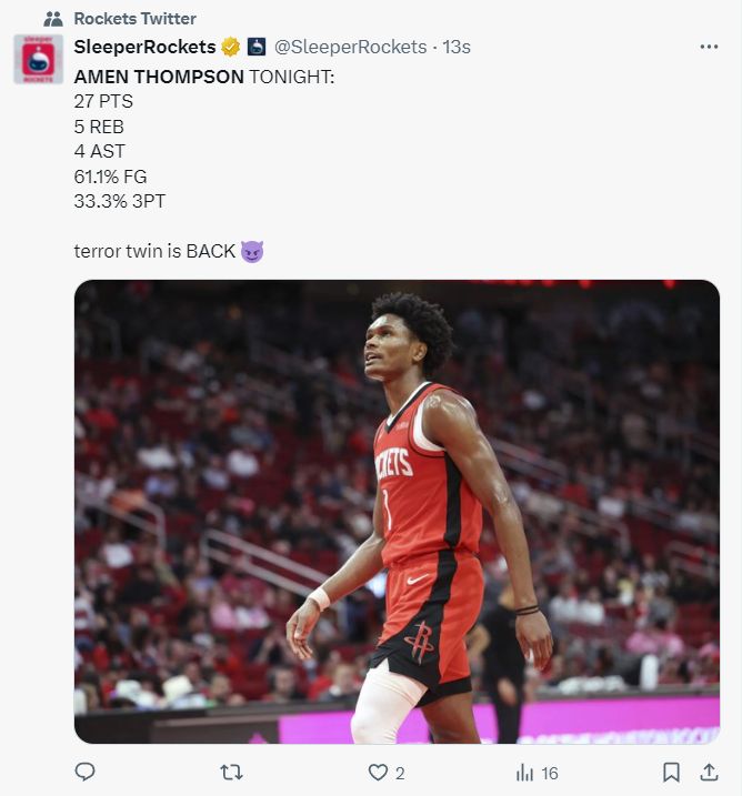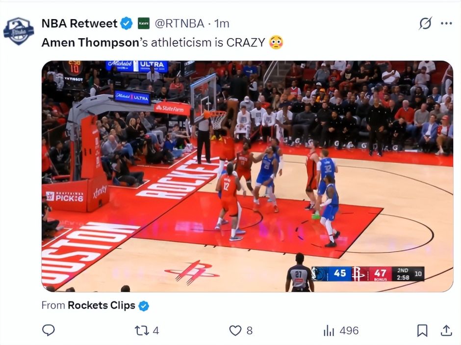火箭官方:阿门这太不真实了,我甚至跟不上他。