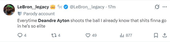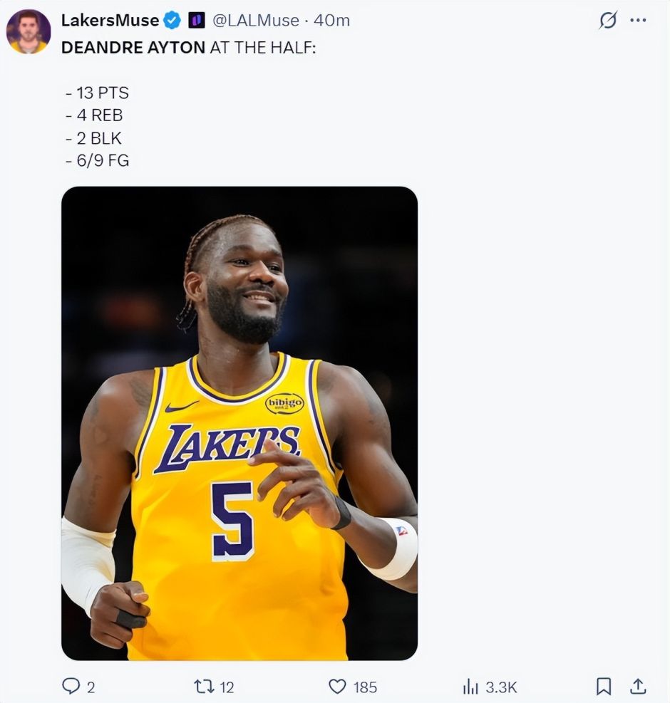 第三节湖人媒体:每当艾顿出手时,我就觉得一定会进,因为他此役太出色了。艾顿单节6中4拿到8分3篮板,三节15中10拿到21分7篮板1助攻2盖帽,命中率高达66.7%,他背靠背第一场轮休这一场体能真的很充沛。