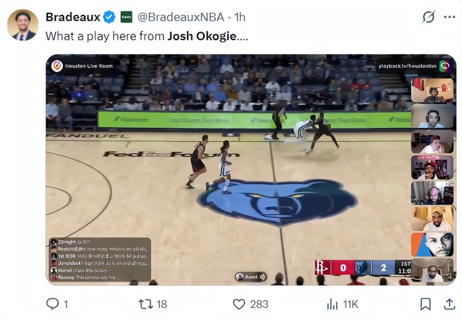 三节奥科吉17分钟,9中5,三分5中3,拿到13分3篮板3助攻1抢断,真实命中率72.2%,休斯顿媒体们对他赞不绝口。