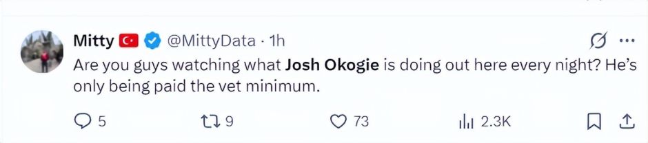土耳其记者:你们是不是还在关注奥科吉的在每个夜晚的表现?他的合同是联盟最低一档的。