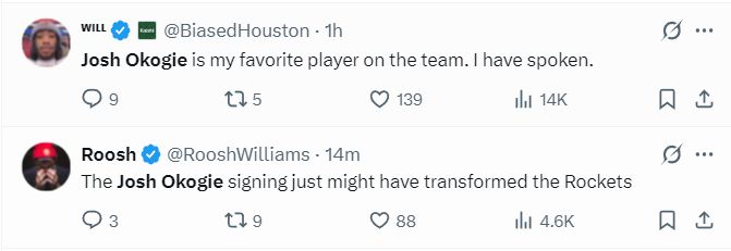 休媒:签下奥科吉可能真的改变了火箭队的状况。