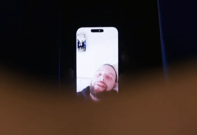 库里生病未随队出征客场,但赛前勇士球员围圈鼓劲时,库里通过视频方式参与。