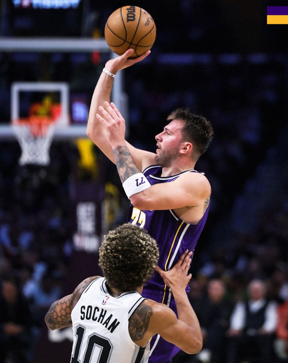 里夫斯、詹姆斯继续伤停,卢卡-东契奇复出带队,上一场湖人平民阵容击败了开拓者,东契奇此役复出带队面对状态不俗的马刺。首节东契奇就展现了超级魔术师的风采,首节拿到13分5篮板3助攻3抢断2盖帽,东契奇积极性太强。