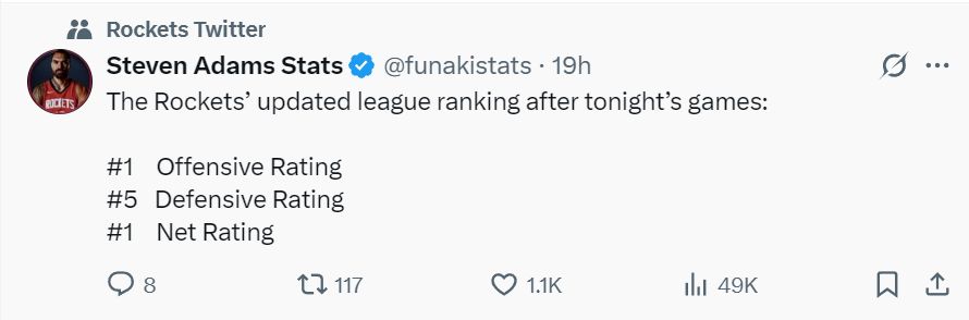 升空日记丨+19分联盟第一!5数据证火箭远胜上季 软肋消散+双塔仍杀招