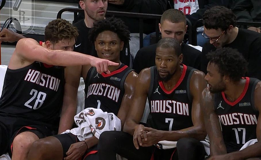 申京是这支火箭队真正的核心,他场均22.4分9.4篮板7.3助攻1.6抢断0.9盖帽,真实命中率58.3%,正负值+14.9,他的战术地位实际上在KD之上,因为申京要承担组织后卫的任务。