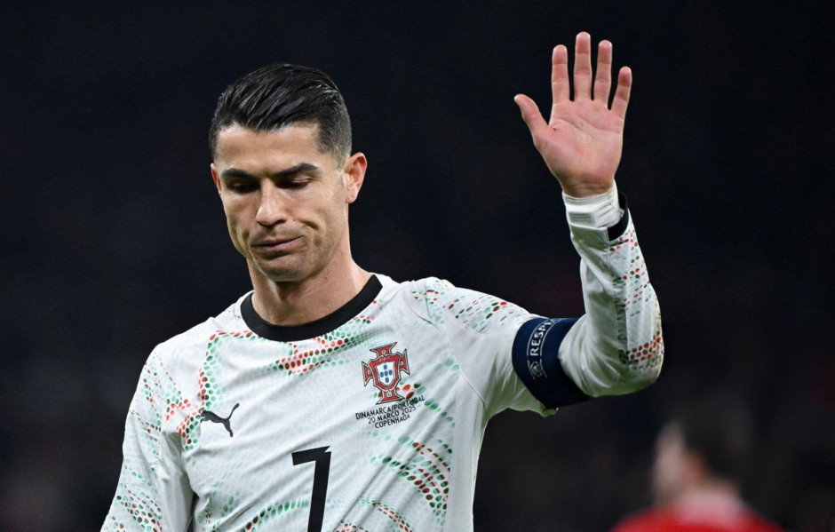 国家队生涯污点!C罗在比赛的第61分钟时向对手肘击被直红罚下