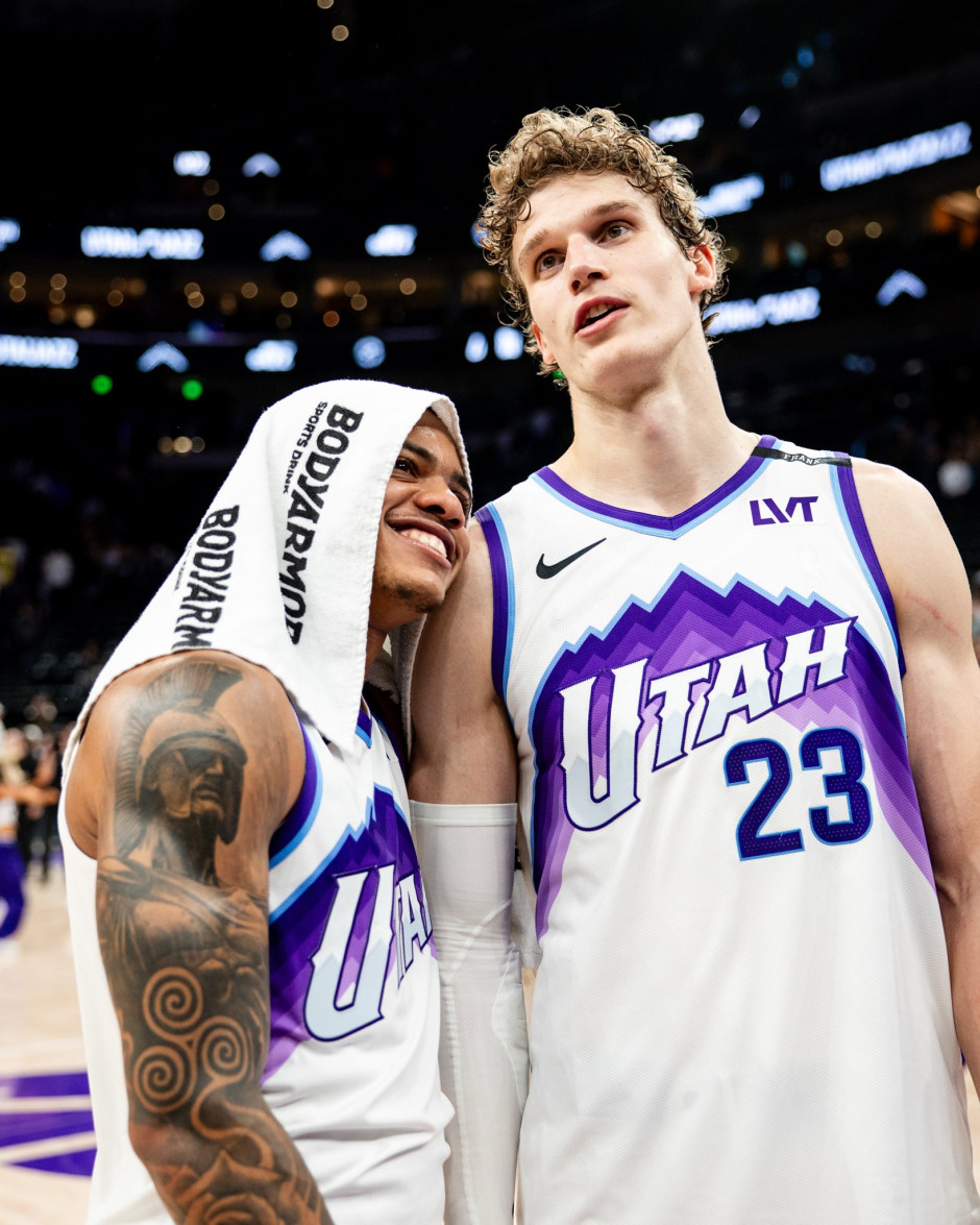 爵士上一场经过两个加时的苦战,以3分的微弱优势险胜公牛队。马尔卡宁手感爆了,狂砍47分7篮板,乔治也有33分进账,最后还投进了绝杀三分。但连续作战对球员的体能消耗太大了,这场面对湖人,他们的体力可能会是个问题。本赛季他们选了新秀贝利,但内线重要的防守大将凯斯勒因为受伤赛季报销了,现在爵士的进攻大多靠马尔卡宁,再加上乔治这些人的外线投射,碰到湖人这种有好几个能持球进攻的球员的队伍,他们的防守得面临不小的考验。
