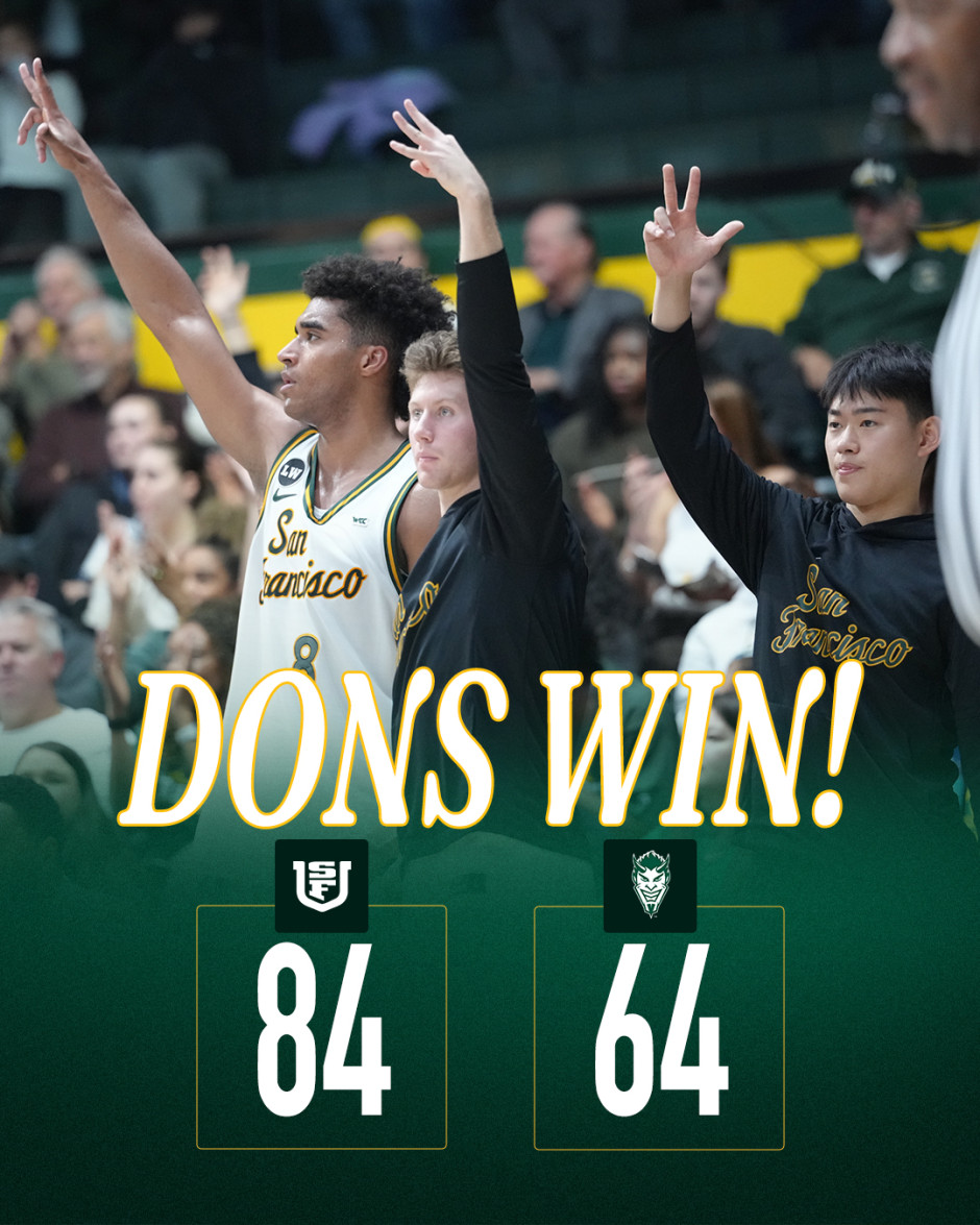 本场旧金山大学对阵西北州立大学,西北州立大学前四场仅有1胜3负战绩。此役,旧金山大学实力远胜于对手,上半场已经获得50-31领先19分优势。