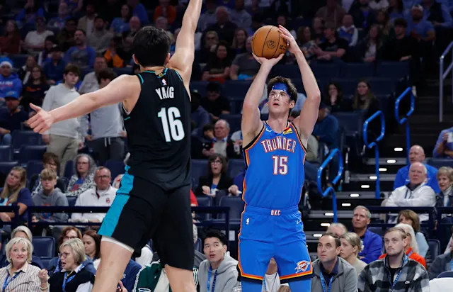 真正的表演时间在第四节,当时开拓者大比分落后,胜负已定,杨瀚森获得了整整一节的表现机会,一点也没浪费。最漂亮的一球是背打雷霆的哈滕斯坦因,用出了标准的梦幻脚步,转身、虚晃、出手,球进还造成犯规,稳稳打成2+1。没过多久,他又完成了一次空接单手暴扣,整个人显得特别放松。