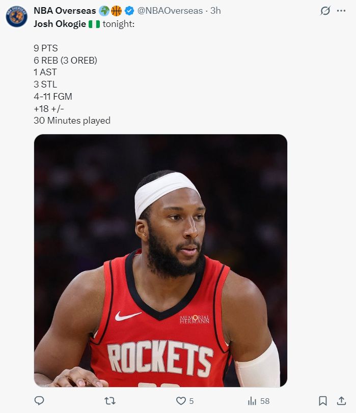 赛后太阳媒体写道:我们完全沉浸在狄龙的复仇计划情节中,却忘记了奥科吉的存在,他为火箭拿到开场的4分。