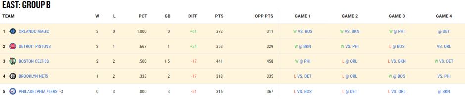 魔术队在杯赛上已经三连胜,活塞此前是二连胜,这场比赛后变为2胜1负,活塞已经错失了直通的主动权,加上冲击队史最长的14连胜失败,太可惜了,因为此役真的只差一点。