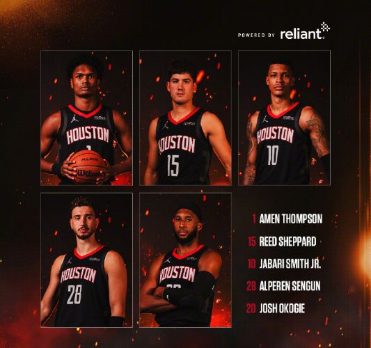 火箭:贾巴里-史密斯、申京、奥科吉、谢泼德、阿门