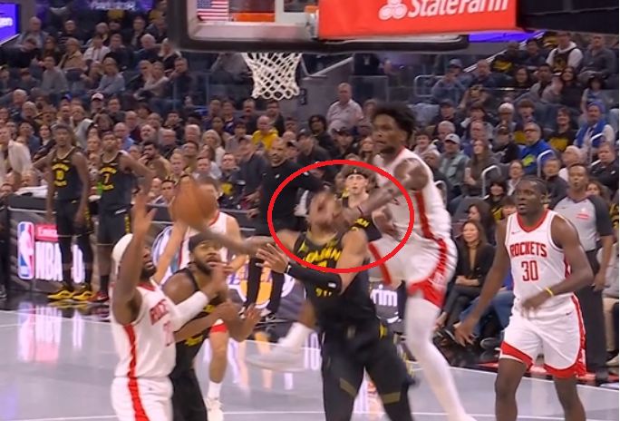 第二节末段,奥科吉被压到膝盖倒地,阿门打中理查德面部被吹罚一级恶意犯规。