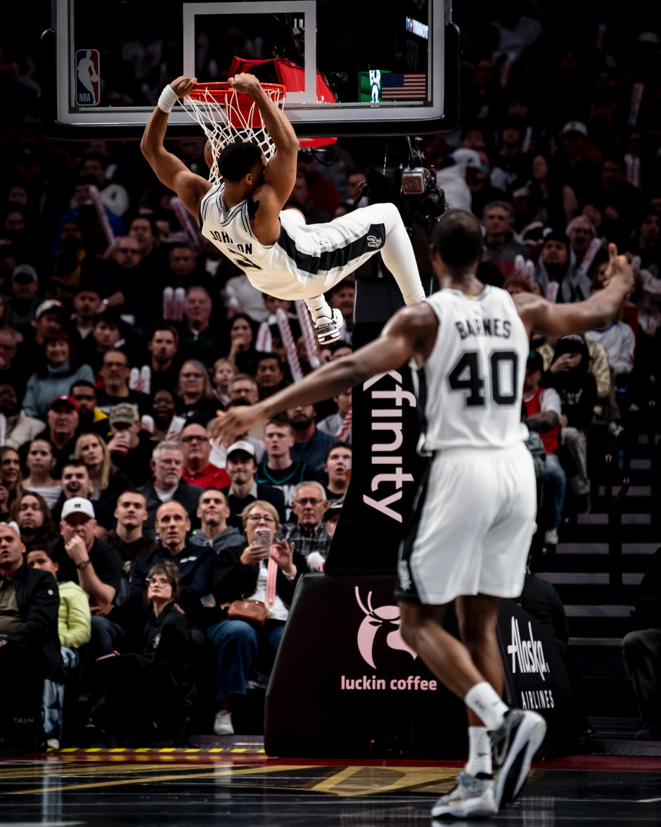 马刺上一场在杯赛以115-102赢了开拓者,文班亚马、卡斯尔这些核心球员没打,德隆·福克斯扛起来进攻的大旗,全场拿了37分还抢了6个篮板、送了8次助攻;凯尔登·约翰逊也有11分10个篮板两双。马刺这赛季场均能盖5.2个帽,在联盟里排11,篮板46.1排第6。这场打掘金文班亚马的小腿伤、卡斯尔的臀部问题,还有麦克劳林的腿筋伤,都全部缺席,对球队内线的攻防肯定要受大影响。文班亚马场均能拿26.2分12.9个篮板,少了他之后,马刺得靠瓦塞尔、巴恩斯这些球员在进攻端多扛点责任,靠团队防守来补核心缺阵的漏洞。