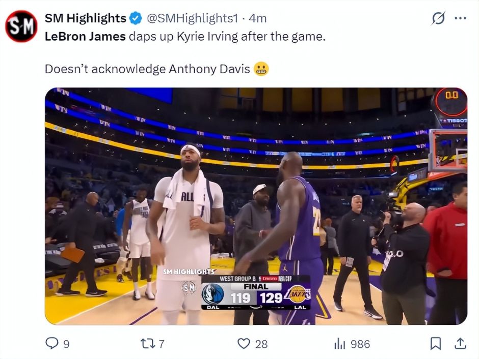 赛前撞臀浓眉+赛后拥抱欧文!40岁老詹在场+13满脸笑容 躺赢真幸福