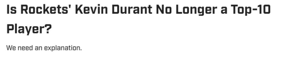 除了杜兰特可能当爸爸引起热议,近期美媒还在讨论另一个话题,现在的杜兰特,还是不是NBA前10的球星。