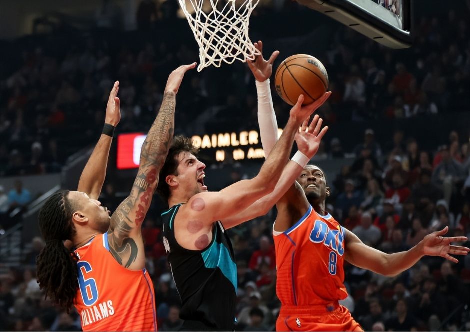 这场比赛因为克林根的伤停,斯普利特先发用了一套全锋线阵容,最高的是阿夫迪亚、穆雷裸足达到6尺8,最矮的西索科也有1.98米,这套阵容除了五号位比雷霆尺寸稍小,其余的4人位置实际上都略有优势,这也是首节两队可以刺刀拼防守的关键,阿夫迪亚手感不佳,SGA手感也不佳,杰威刚刚复出还没有找到状态,首节打完雷霆仅24-19领先开拓者。
