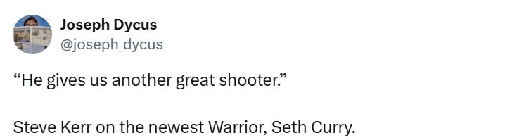 塞斯-库里已经现身勇士的训练场,而主帅科尔表示,塞斯-库里可以参加明日对阵雷霆的比赛。科尔还表示,塞斯-库里的到来,让球队多了一位出色的射手。