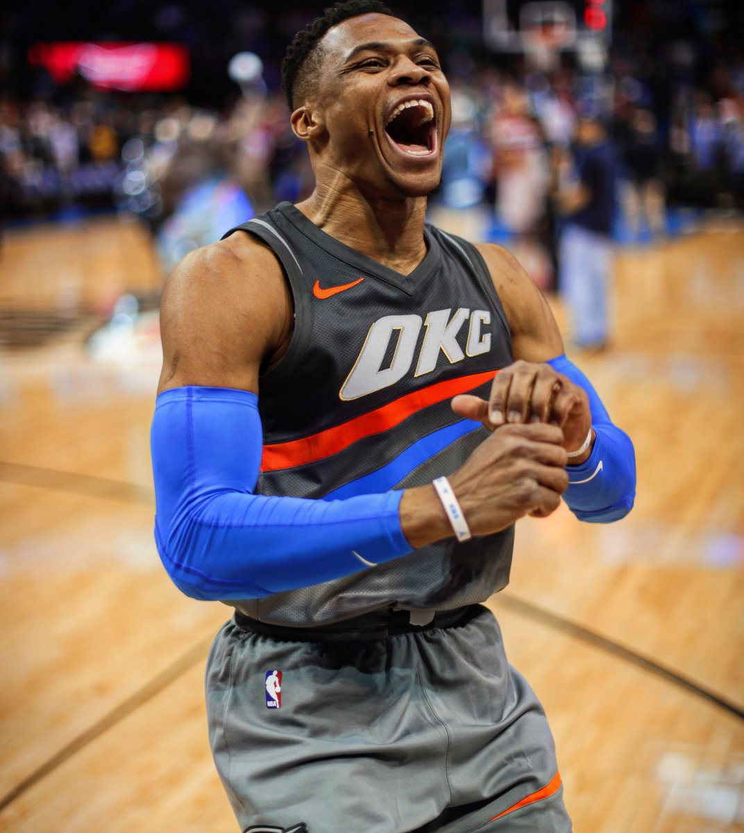 赛季至今,威斯布鲁克场均出场35.9分钟,能得到25.4分9.5篮板10.2助攻2.06抢断。