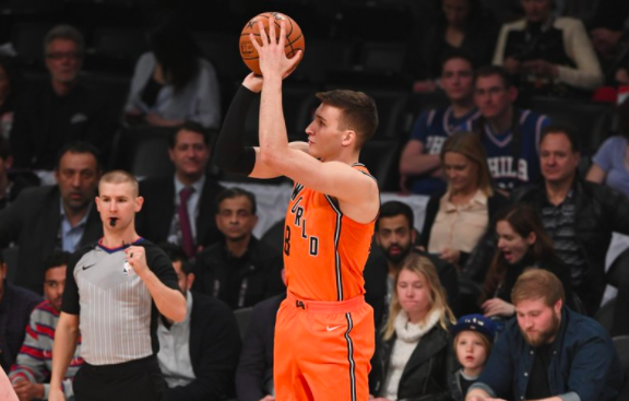 24直播网2月17日讯 世界队在今天的新秀挑战赛中以155-124击败美国队,世界队球员波格丹-波格丹诺维奇当选为新秀赛MVP,他登场22分钟,得到26分4篮板6助攻2抢断。