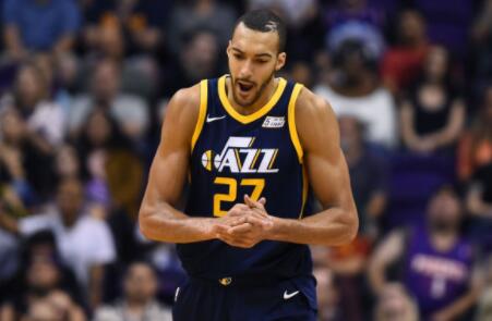 戈贝尔赛季至今场均上场31.4分钟,得到13.1分10.1个篮板1.4个助攻2.33个盖帽。