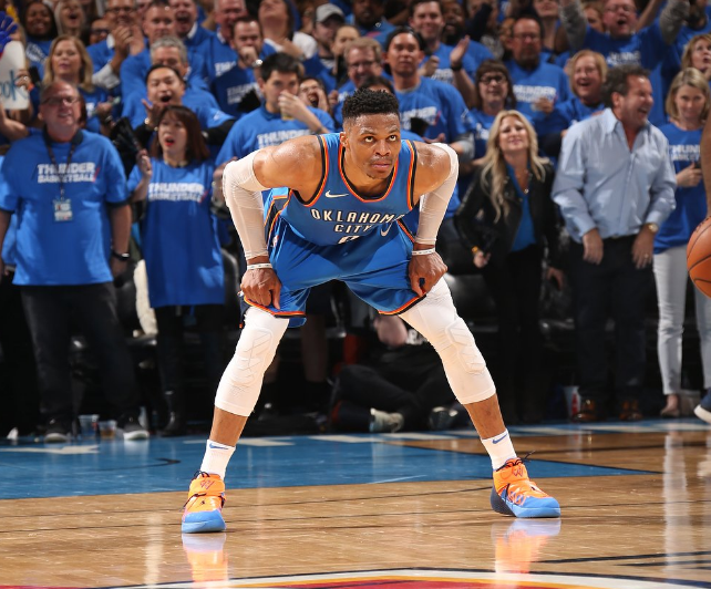 24直播网4月26日讯 今天雷霆在主场107-99战胜爵士,系列赛大比分2-3暂时落后。雷霆球员拉塞尔-威斯布鲁克出战44分钟,39投17中得到45分15篮板7助攻。