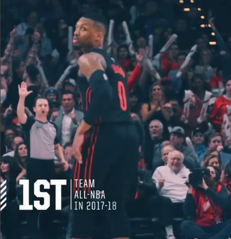 开拓者官方今天更新了Instagram,祝贺球队后卫达米安-利拉德生涯首次入选NBA最佳阵容一阵。