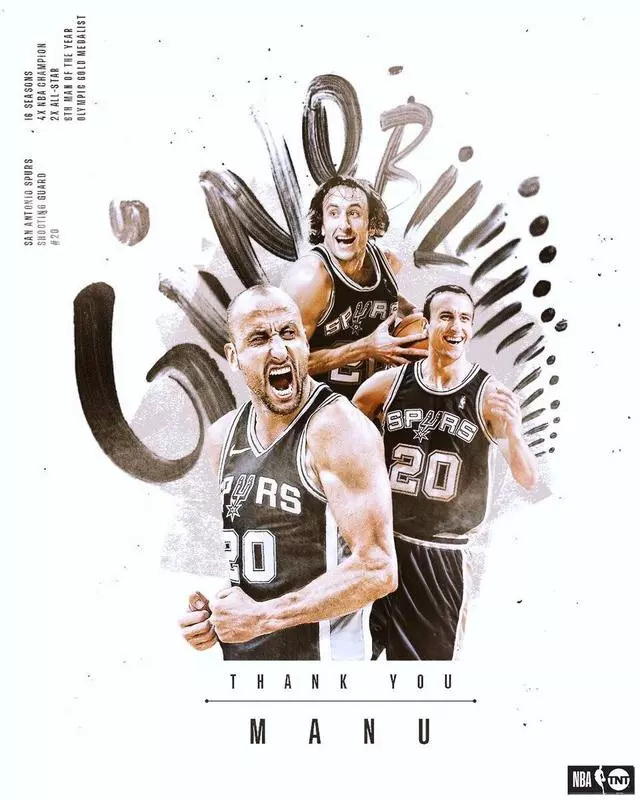 “今天,我百感交集,我要宣布的是,我从篮球界退役了。对过去的23年出现在我生命中的所有人都充满着强烈而真诚的感激(家人、朋友、队友、教练、工作人员和球迷),这是一段美妙的旅程,比我做过的最疯狂的梦还要美妙。” ——马努-吉诺比利