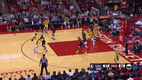 此役最令人亮眼的还是勒布朗,只见老詹 把我炮一屁股顶开了,暗示兄弟不合?第二节还有1分11秒,火箭暂时以58 - 53领先湖人5分。